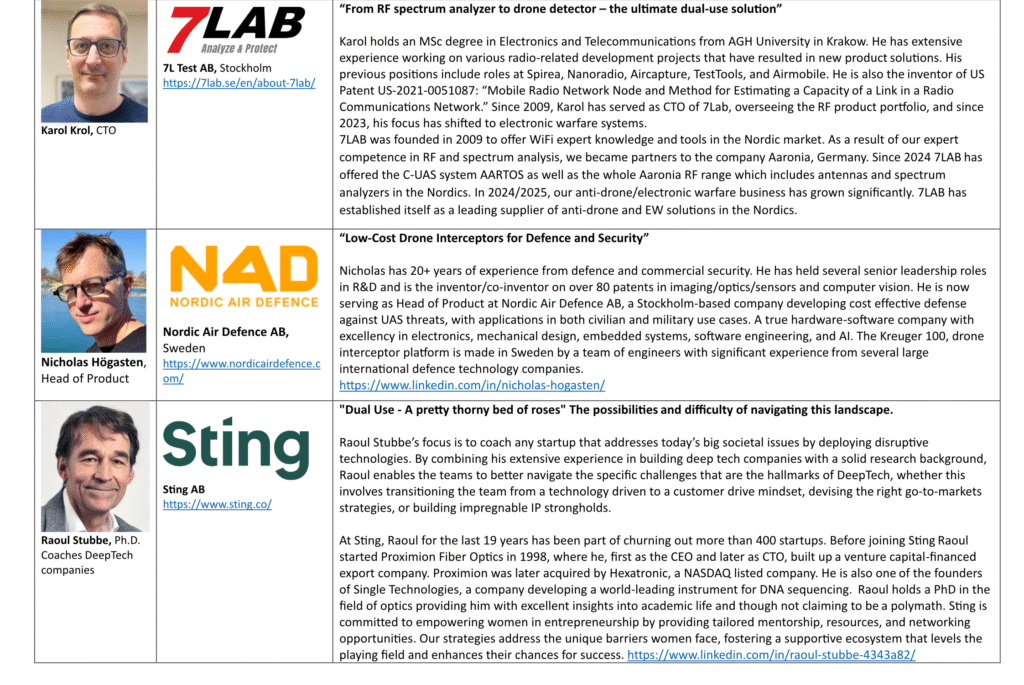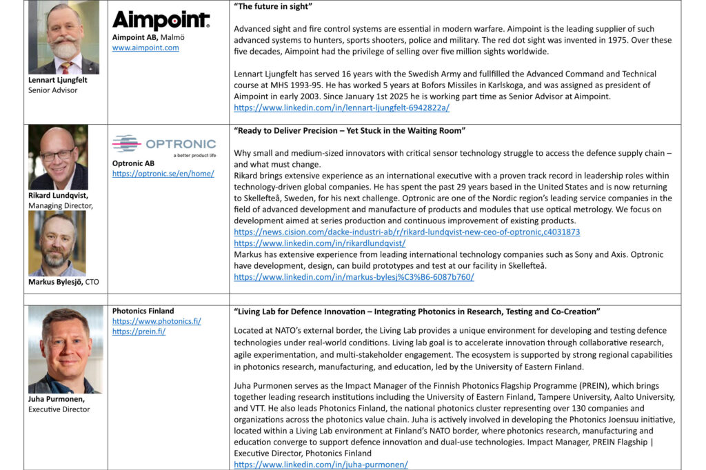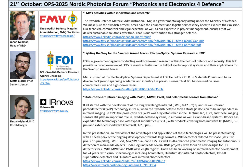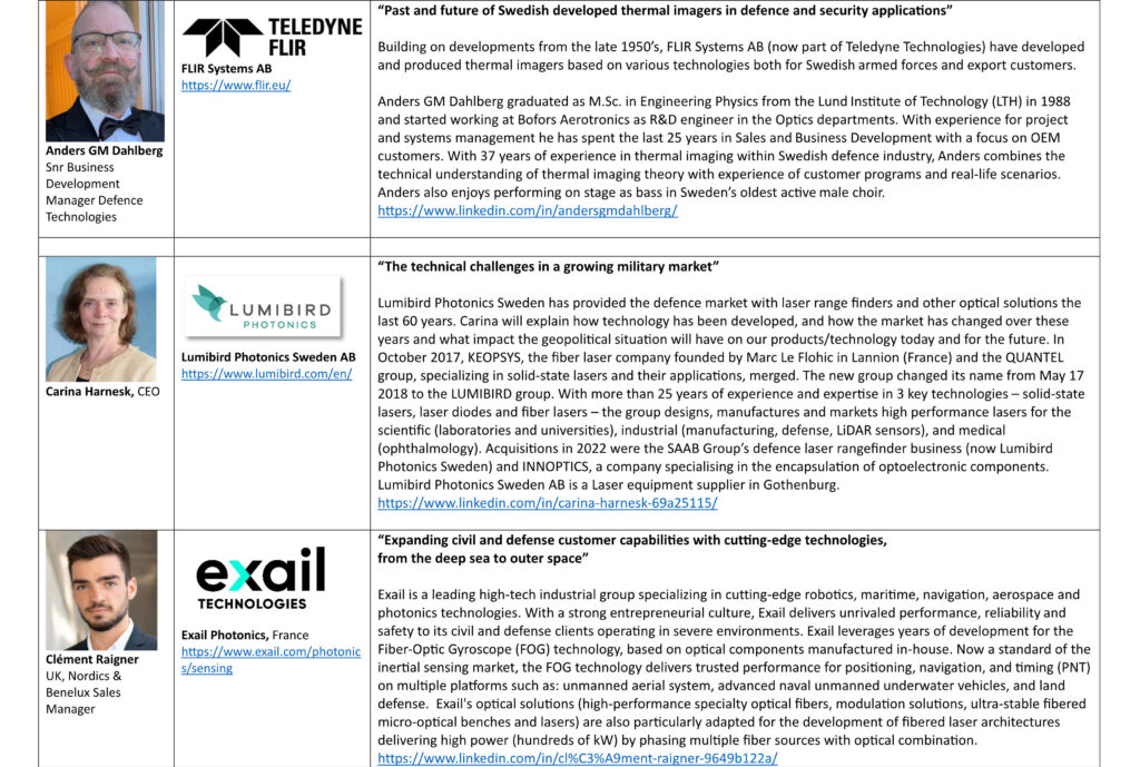 3. Download 4Defence Speakerlist (with active web-links): https://photonicsweden.org/wp-content/uploads/2025-10-02-OPS-2025-Defence-Speaker-list-v19.pdf
